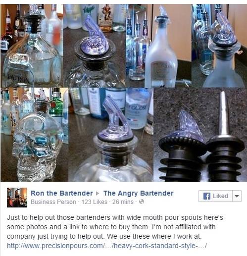 Just to help out those bartenders with wide mouth pour spouts here's some photos and a link to where to buy them. I'm... Posted by Ron the Bartender on Thursday, April 30, 2015